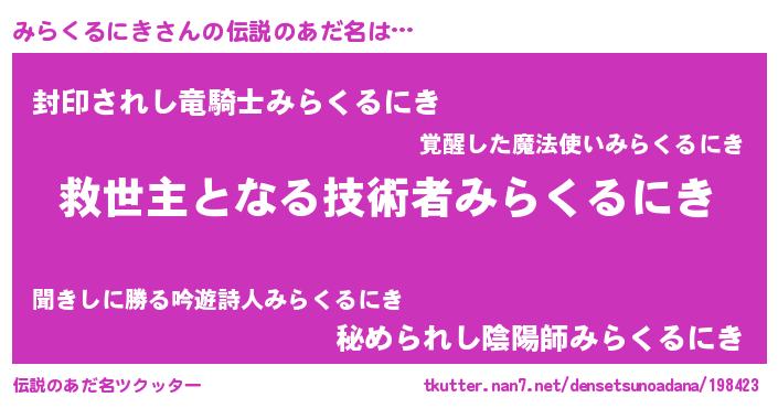 | 欧米人風あだ名 | 『ダニエルみらくるにき』 |