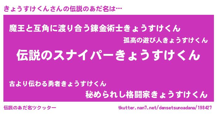 | ヒーロー風カッコイイあだ名 | 『スーパーキョウスケクン』 |