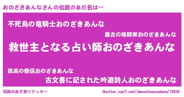 | 意味不明あだ名 | 『住所不定無職おのざきあんな(65歳)』 |