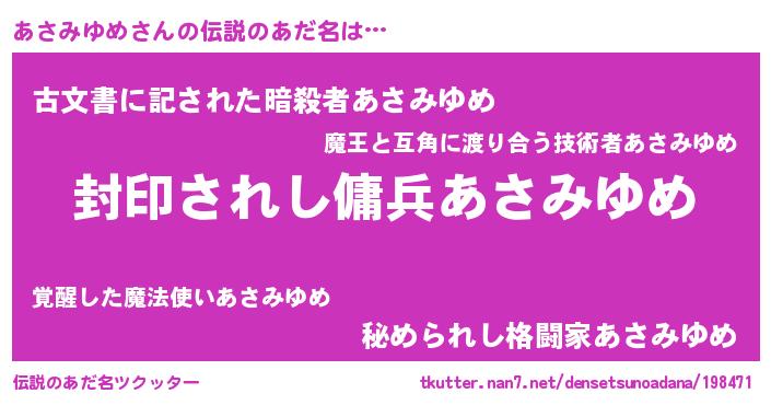 | ヒーロー風カッコイイあだ名 | 『スーパーアサミユメ』『ネオアサミユメ』 |