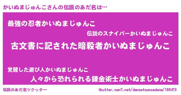 | 男性向けラノベタイトル風あだ名 | 『かいぬまじゅんこに滅ぼされるだけの簡単なお仕事です』 |