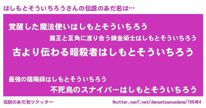 | 意味不明あだ名 | 『もやし科はしもとそういちろう属』 |