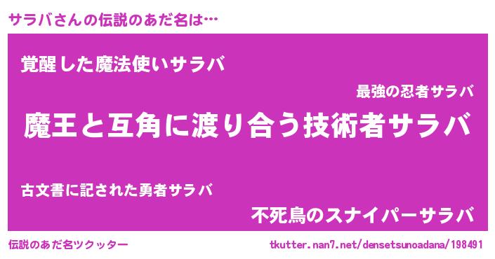 | ヒーロー風カッコイイあだ名 | 『慈愛の使者サラバ』『炎刃騎士サラ』 |