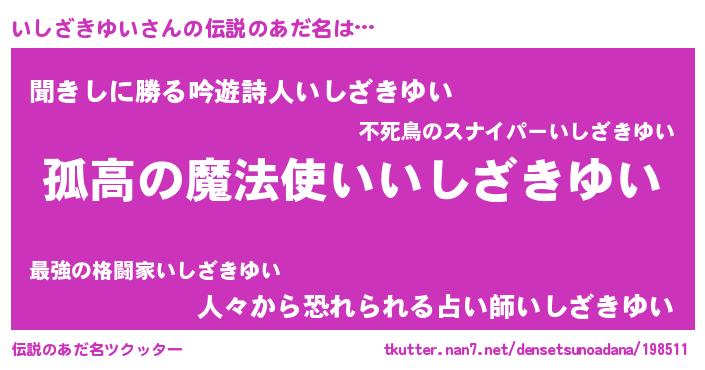 | 胡散臭い通販商品みたいなあだ名 | 『信頼と実績のサプリメント…その名も「いしざきゆい」』 |