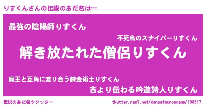 | 女子向けラノベタイトル風あだ名 | 『りすくんアンティーク』 |