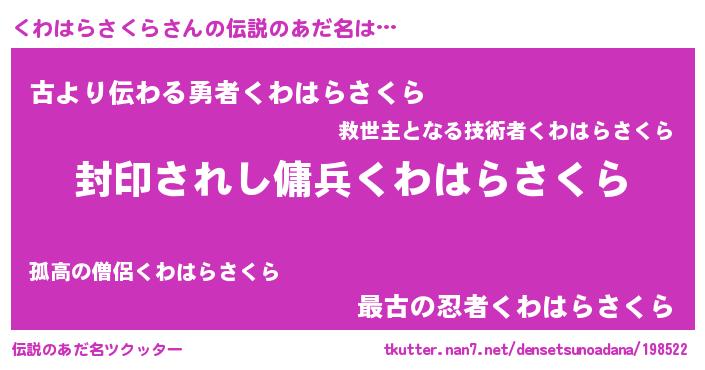 | ヒーロー風カッコイイあだ名 | 『スーパークワハラサクラ』 |