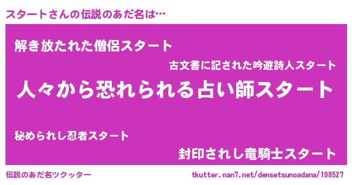 | ヒーロー風カッコイイあだ名 | 『正義の使者スタート』『魔戒騎士スタ』 |