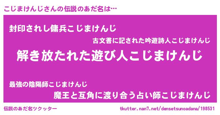 | 男性向けラノベタイトル風あだ名 | 『転生したらこじまけんじだった件』 |
