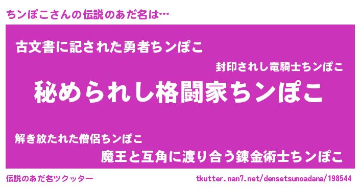 | ファンタジー風あだ名 | 『エターナルチンポコー』『クインチット』 |