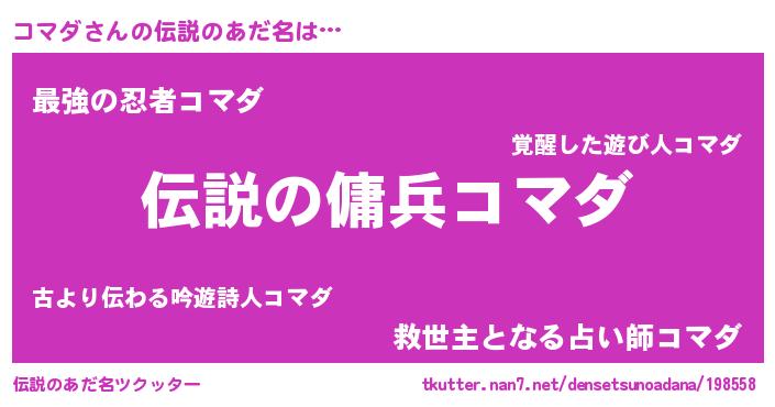 | ヒーロー風カッコイイあだ名 | 『スーパーコマダ』『究極戦士コマダ』 |