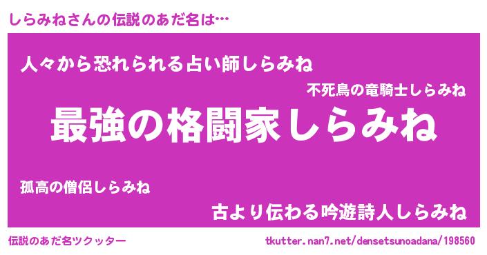 | 意味不明あだ名 | 『しらみねフォーエバー』 |
