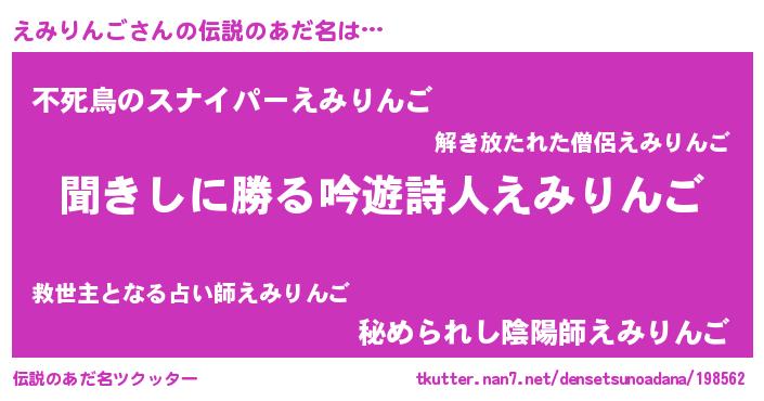 | 男性向けラノベタイトル風あだ名 | 『えみりんごという概念が存在しない退屈な世界 』 |