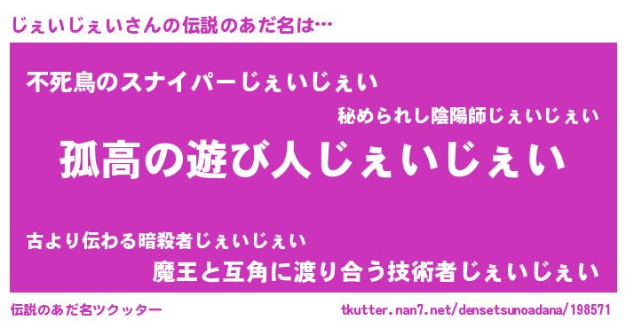 | 意味不明あだ名 | 『住所不定無職じぇいじぇい(85歳)』 |