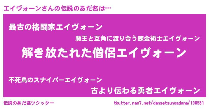 | 意味不明あだ名 | 『住所不定無職エイヴォーン(47歳)』 |
