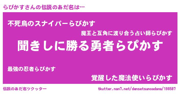 | ヘコむあだ名 | 『らぴかす(遠い目)』『らぴにゅー』 |
