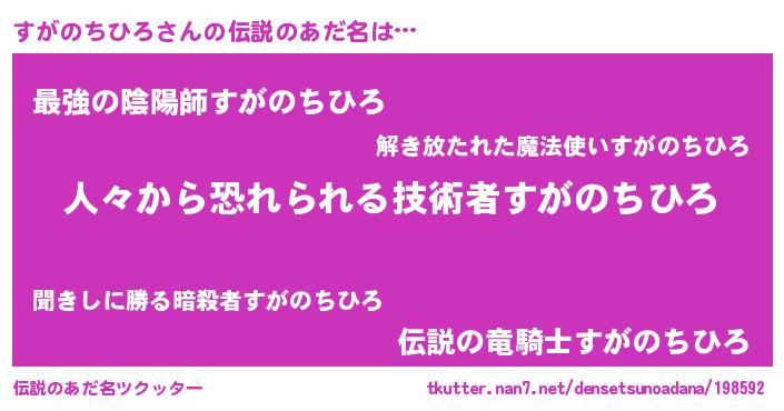 ポケモン風あだ名 | 『スックウザ』『スガノダネ』 |