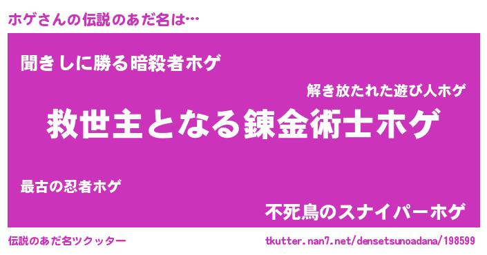| ヒーロー風カッコイイあだ名 | 『天空の使者ホゲ』『ネオホゲ』 |