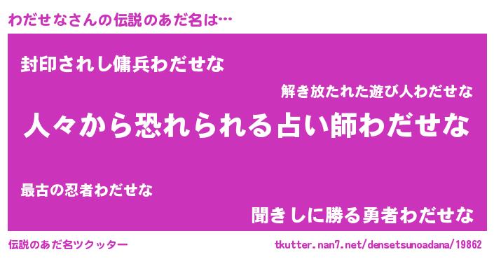 | 女子向けラノベタイトル風あだ名 | 『わだせななんてお断りですっ。』 |