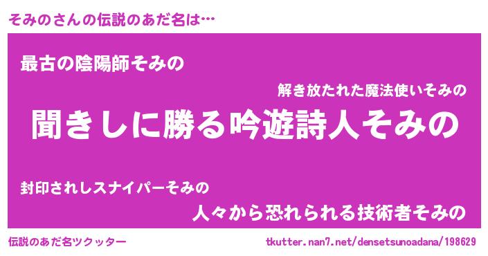 | 男性向けラノベタイトル風あだ名 | 『そみのという概念が存在しない退屈な世界 』 |