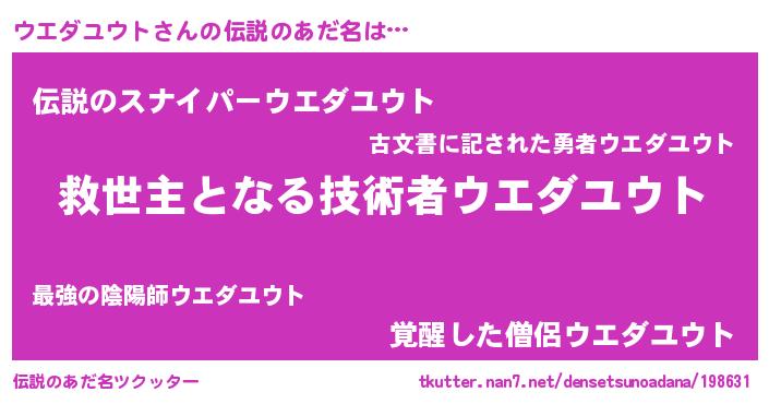 | 肩書あだ名 | 『ウエダユウト中佐』『ウエダユウト閣下』 |