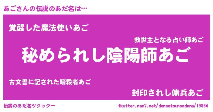 | 女子向けラノベタイトル風あだ名 | 『あごの雑貨屋さん』『あご様がみてる』 |