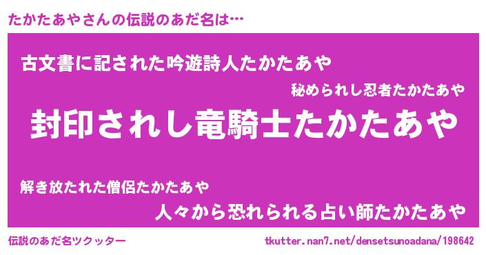 | ヒーロー風カッコイイあだ名 | 『スーパータカタアヤ』『ネオタカタアヤ』 |