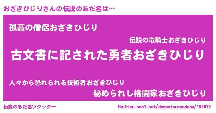 | ヒーロー風カッコイイあだ名 | 『ネオオザキヒジリ』『仮面オザダー』 |