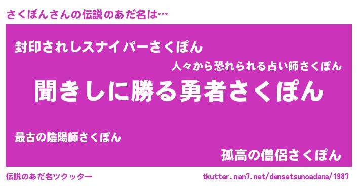 | ヘコむあだ名 | 『さくぽん(震え声)』『さくにゅー』 |