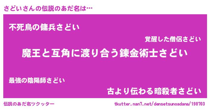 | ヒーロー風カッコイイあだ名 | 『最強戦士サドイ』『愛の使者さどい』 |