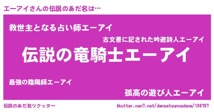 | ヒーロー風カッコイイあだ名 | 『超時空戦士エーアイ』『天弓騎士エー』 |