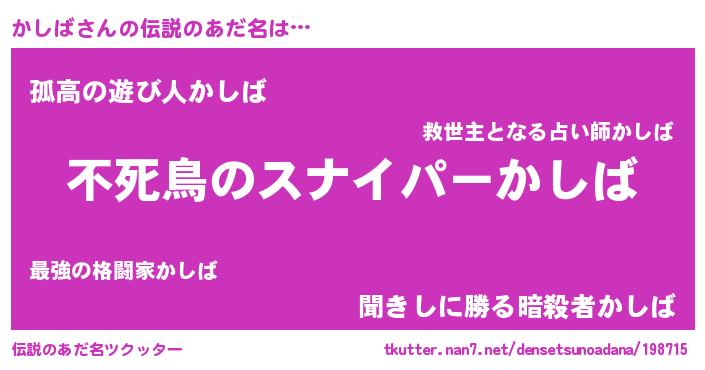 | ヒーロー風カッコイイあだ名 | 『スーパーカシバ』『仮面カシダー』 |