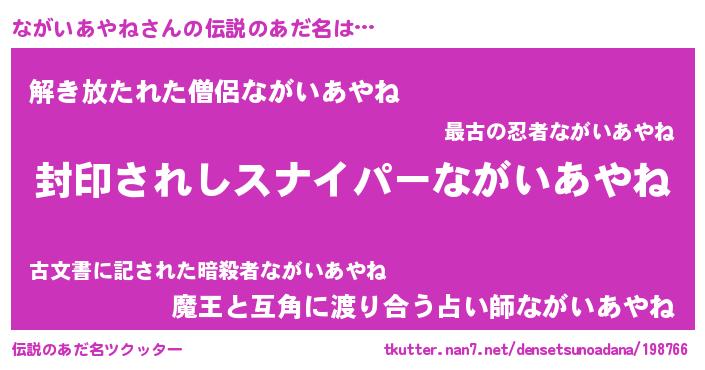 | ヒーロー風カッコイイあだ名 | 『スーパーナガイアヤネ』『幻影騎士ナガ』 |