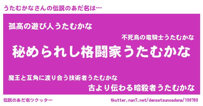 | 女子向けラノベタイトル風あだ名 | 『うたむかななんてお断りですっ。』 |