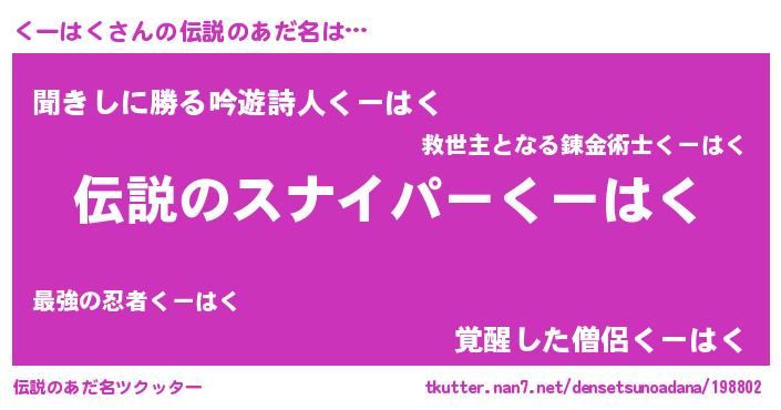 | 胡散臭い通販商品みたいなあだ名 | 『必ず成功する霊験あらたかなお札…その名も「くーはく」』 |