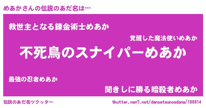 | 意味不明あだ名 | 『ペロリンめあか』『永久保存めあか』 |