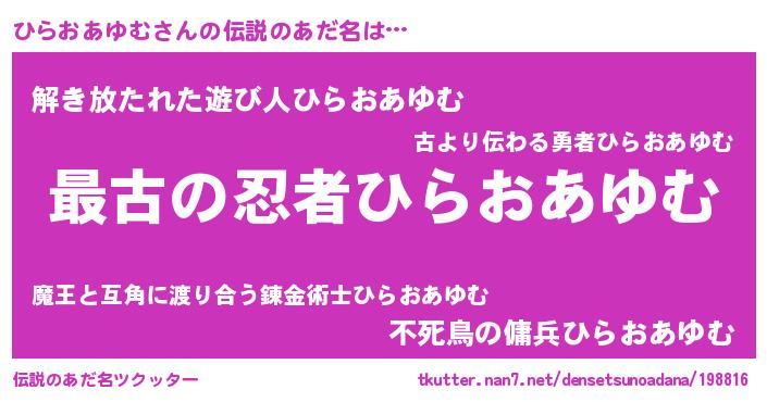 | 意味不明あだ名 | 『住所不定無職ひらおあゆむ(53歳)』 |