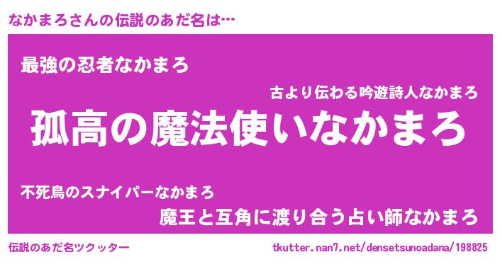 | 男性向けラノベタイトル風あだ名 | 『ナカマロスレイヤー』 |