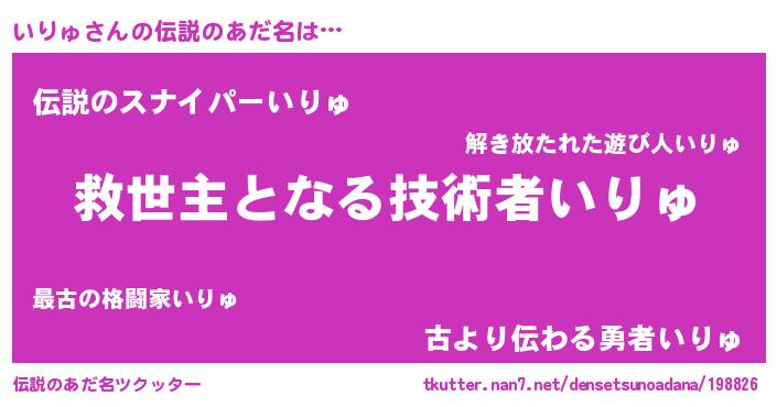 | 意味不明あだ名 | 『眠気覚ましガムいりゅ味』『自称いりゅ』 |