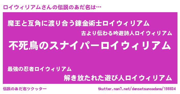 | ヒーロー風カッコイイあだ名 | 『スーパーロイウィリアム』 |