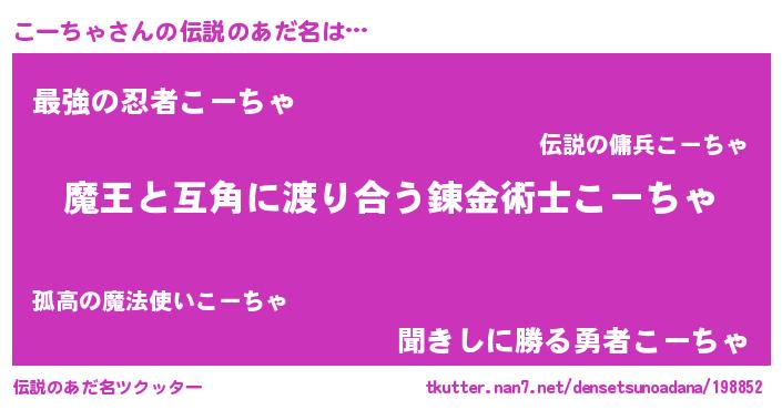 | 女子向けラノベタイトル風あだ名 | 『こーちゃ恋絵巻』『こーちゃの契約王妃』 |