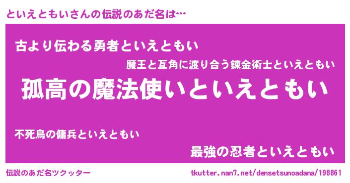 | ポケモン風あだ名 | 『トイセウス』『ヒトイエトモイ』 |