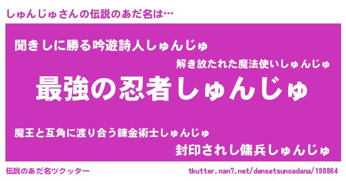| 男性向けラノベタイトル風あだ名 | 『しゅんじゅに滅ぼされるだけの簡単なお仕事です』 |
