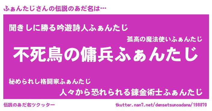| 男性向けラノベタイトル風あだ名 | 『ふぁんたじの憂鬱』 |