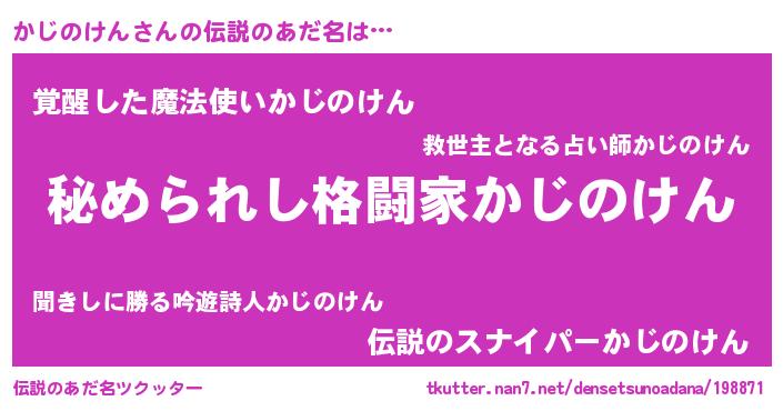 | ファンタジー風あだ名 | 『エターナルカジノケンー』『カジフェル』 |