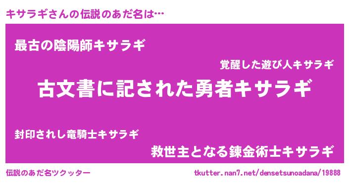 | ヒーロー風カッコイイあだ名 | 『ネオキサラギ』『ウルトラキサラギマン』 |
