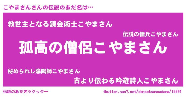 | 女子向けラノベタイトル風あだ名 | 『こやまさんは平凡を望む』 |