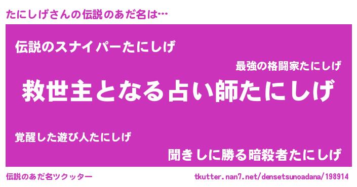 ヒーロー風カッコイイあだ名 | 『慈愛の使者たにしげ』『ネオタニシゲ』 |