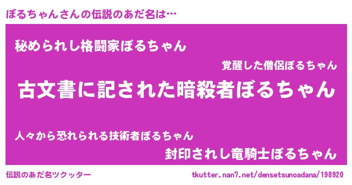 | 意味不明あだ名 | 『永久保存ぼるちゃん』『自称ぼるちゃん』 |