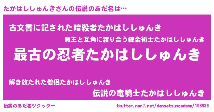 | 意味不明あだ名 | 『もやし科たかはししゅんき属』 |