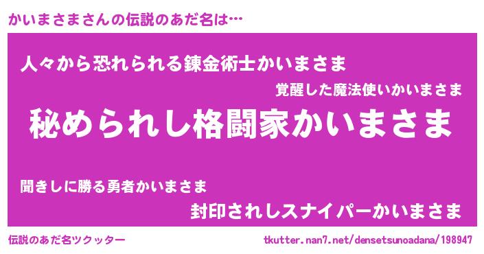 | 欧米人風あだ名 | 『かいまさまクリステル』 |